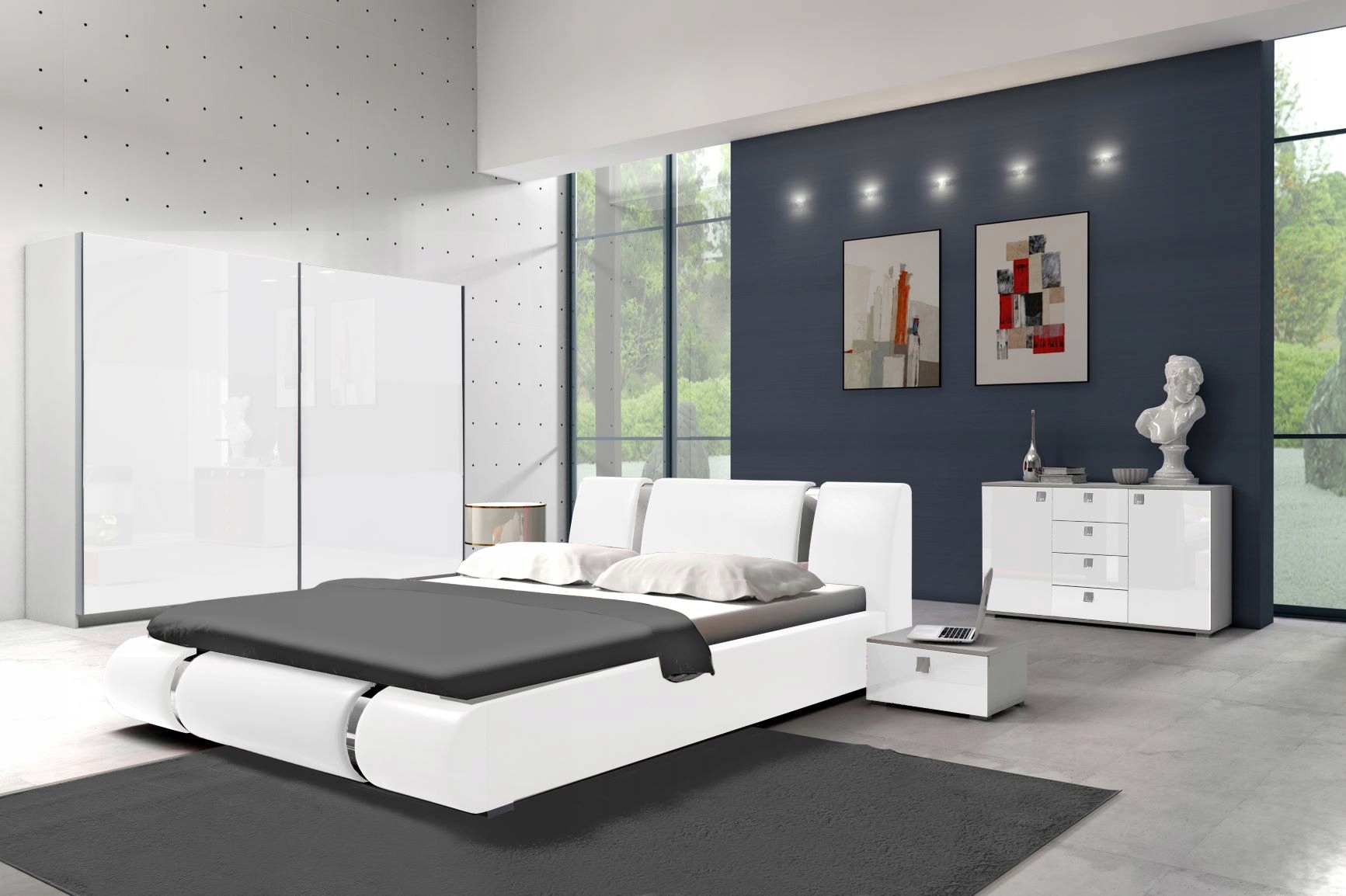 Шукаєте сучасну спальню? Завдяки комплекту AGAT ви облаштуєте всю кімнату та зробите її функціональною. Поєднання класичного сірий з білим надає приміщенню унікальний характер. Використання цих кольорів на кожному елементі набору робить все цільним і ідеально поєднується. Характерною особливістю ліжка є білий пояс посередині та дві сріблясті металеві вставки. Форма ліжка округла, що оптично збільшує його. Фасади меблів виготовлені з глянцевої дошки, а b>корпуси є матово-білими, що додає трохи розкішного дизайну. Дозвольте собі насолодитися своїм інтер'єром і оберіть набір АГАТ.