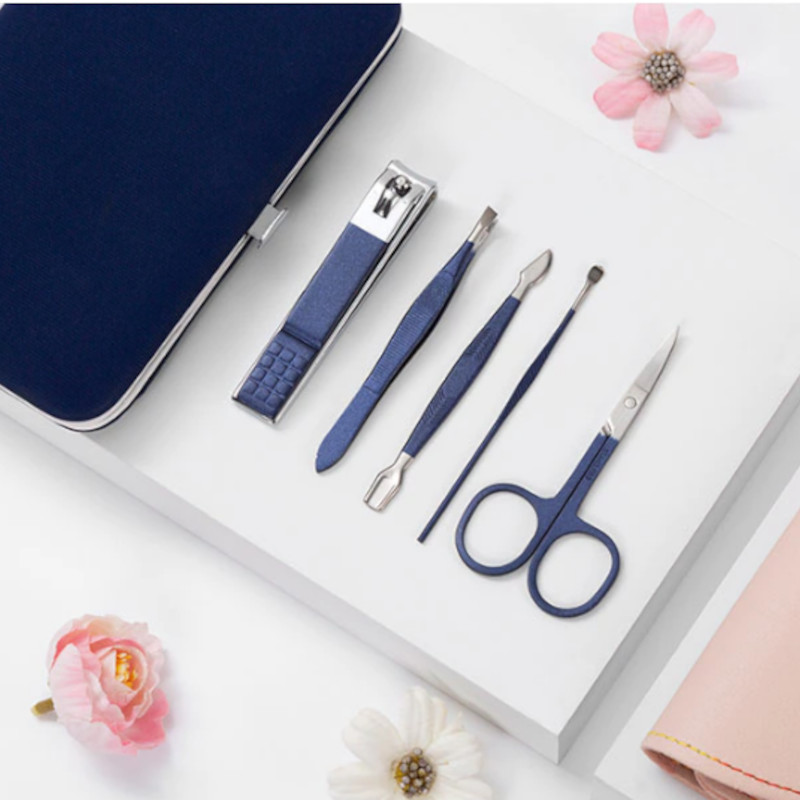 Усі аксесуари, які вам знадобляться для стрижки, очищення нігтів, відштовхування, обрізання кутикул, вирівнювання брів і багато іншого в естетичному футлярі.