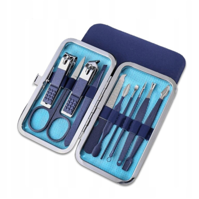 Повний набір для манікюру та педикюру в елегантному темно-синьому футлярі