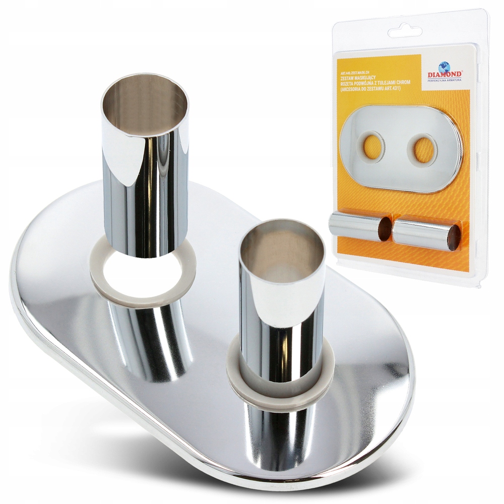 КОМПЛЕКТ МАСКУВАННЯ ДЛЯ ПІДКЛЮЧЕНЬ ТРУБ РАДІАТОРА, ПОДВІЙНА РОЗЕТКА З ХРОМОВОЮ ГІЛЬЗОЮ