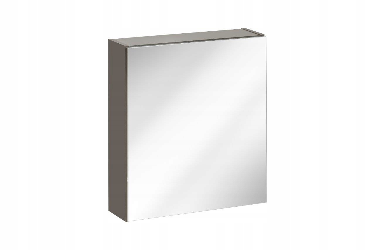 - Стійка для ванної кімнати сірого кольору з дзеркальними дверцятами