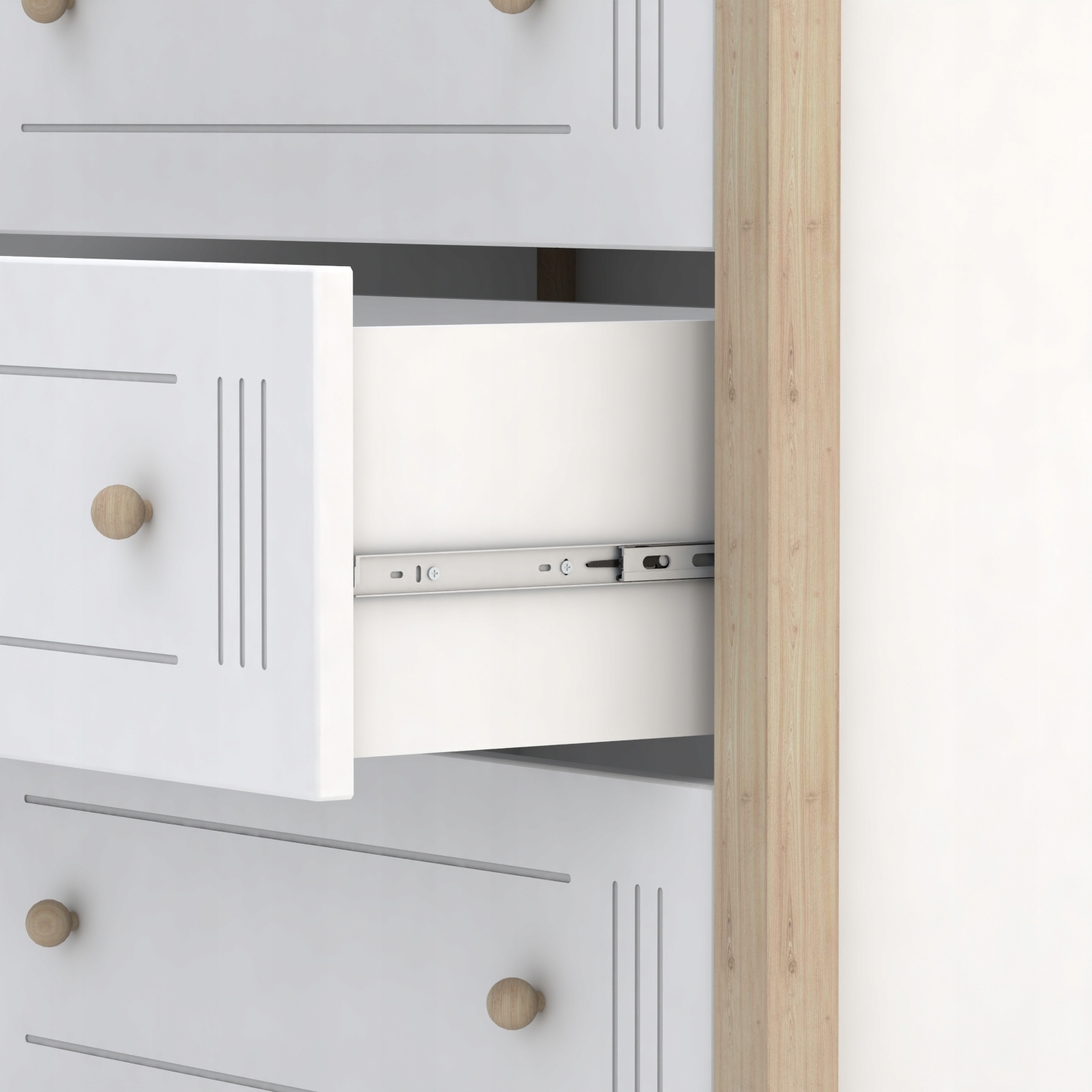 - Ящики встановлені на металевих кулькових напрямних, що забезпечує тихе та плавне відкривання/закривання висувні ящики