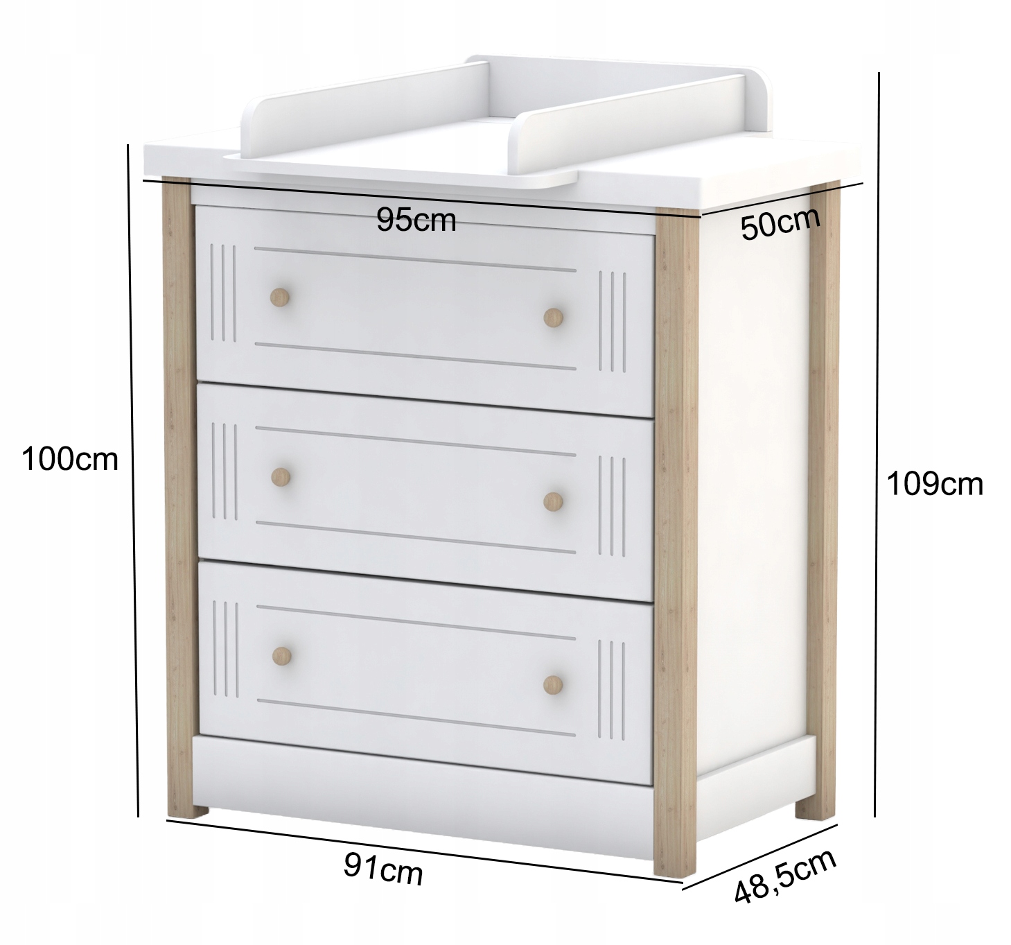 - Має три просторі глибокі висувні ящики, які можуть вмістити багато речей дитини< /li>