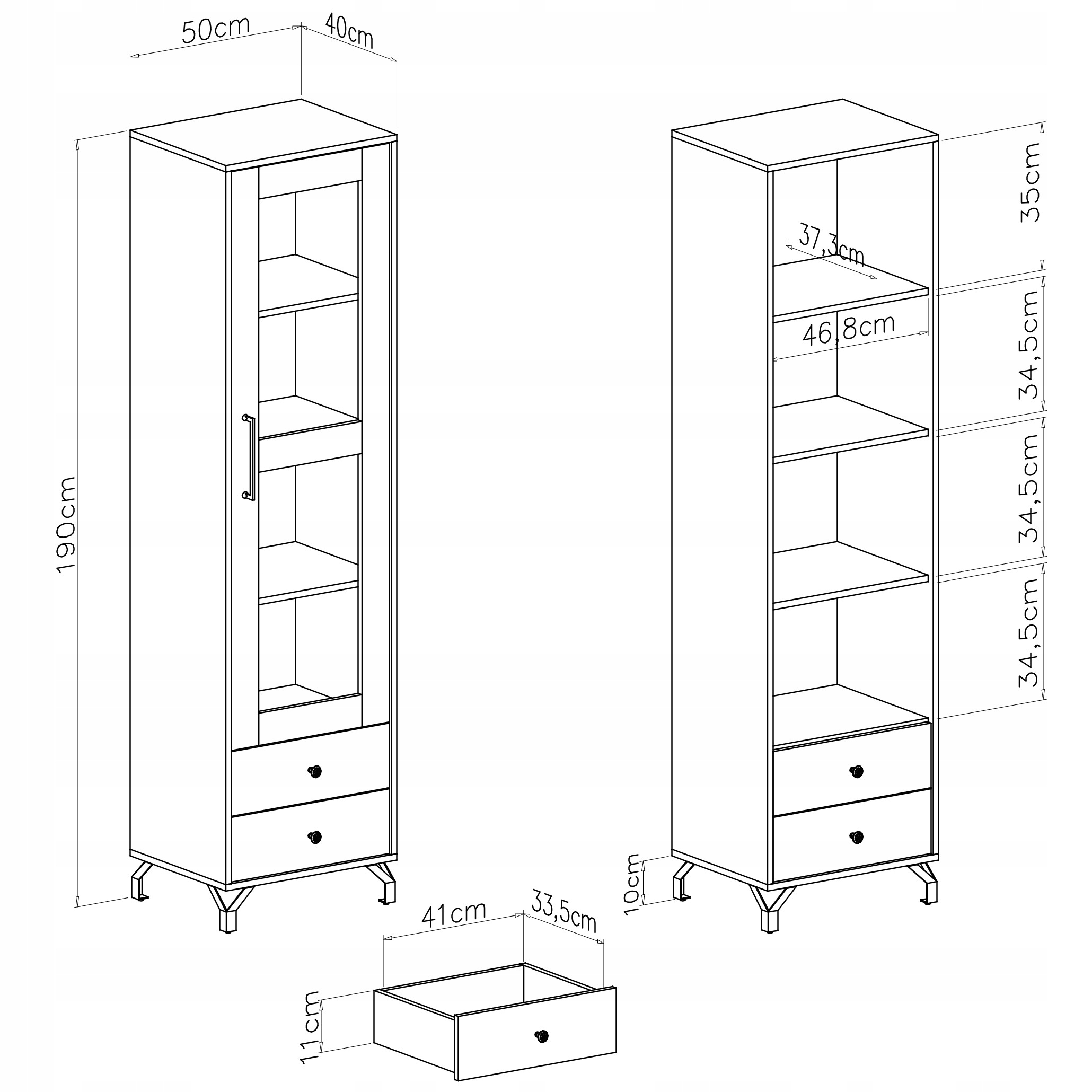 - Bergen BE3 – вузька вітрина з ящиками - 50 x 190 x 40