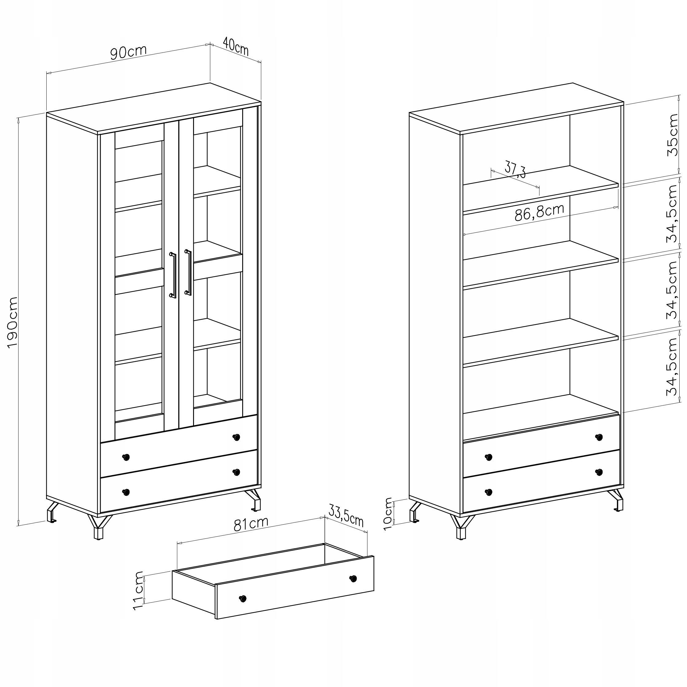 - Bergen BE2 - вітрина з ящиками - 90 x 190 x 40