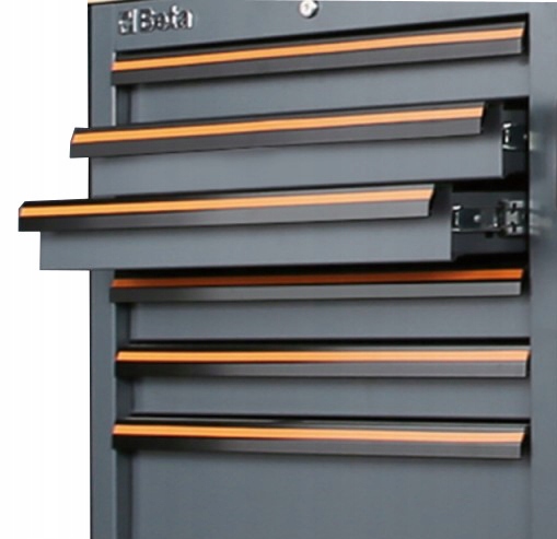 Новий матовий сірий колір, ручки з помаранчевим профілем і хромований логотип Beta роблять нові меблі для майстерень ще більш захоплюючим.