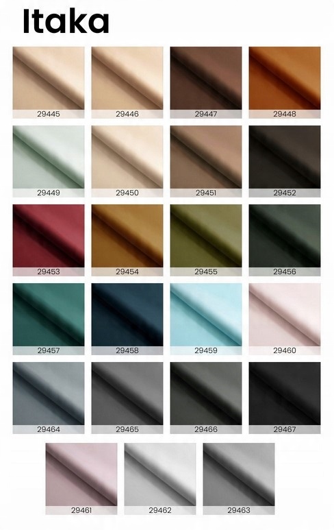 Крім того, тканина приємна та м'яка на дотик, оскільки походить із порід плюшу та оксамиту. Приємну структуру тканини підкреслюють численні кольори в палітрі. Серед кольорів можна вибрати модні відтінки пляшкового зеленого, приглушено сірого або пастельні рожево-блакитні. З тканиною Ітака можна ідеально підкреслити форму м'яких меблів.