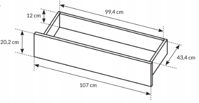 - Колір: Матовий білий (корпус) + Білий глянець (узголів'я + контейнер) + Дуб онук