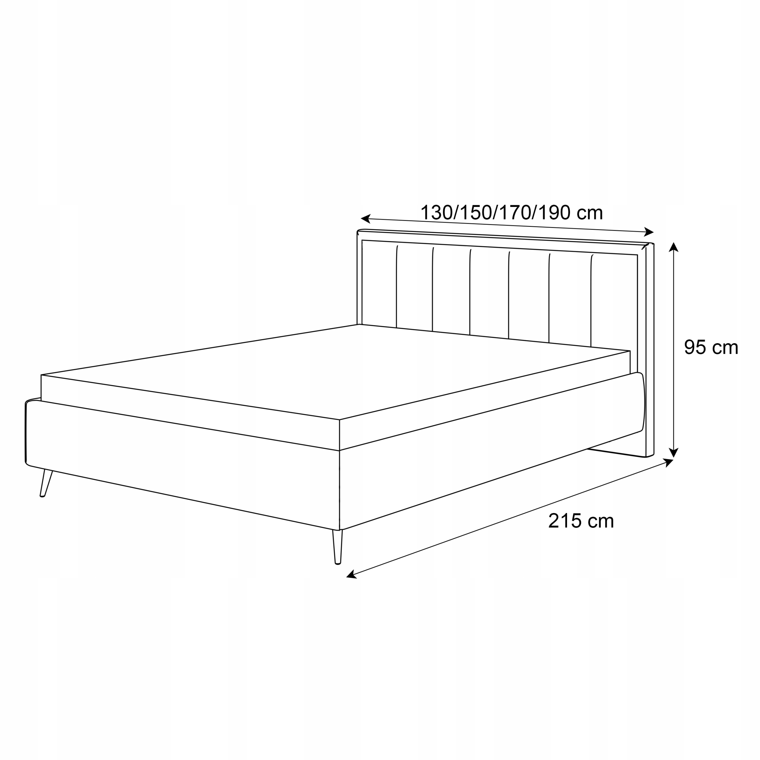 180 х 200 см,загальна ширина: 190 см, висота підголівника: 95 см, загальна глибина: 215 см, висота з ніжками без матраца: 36 см.