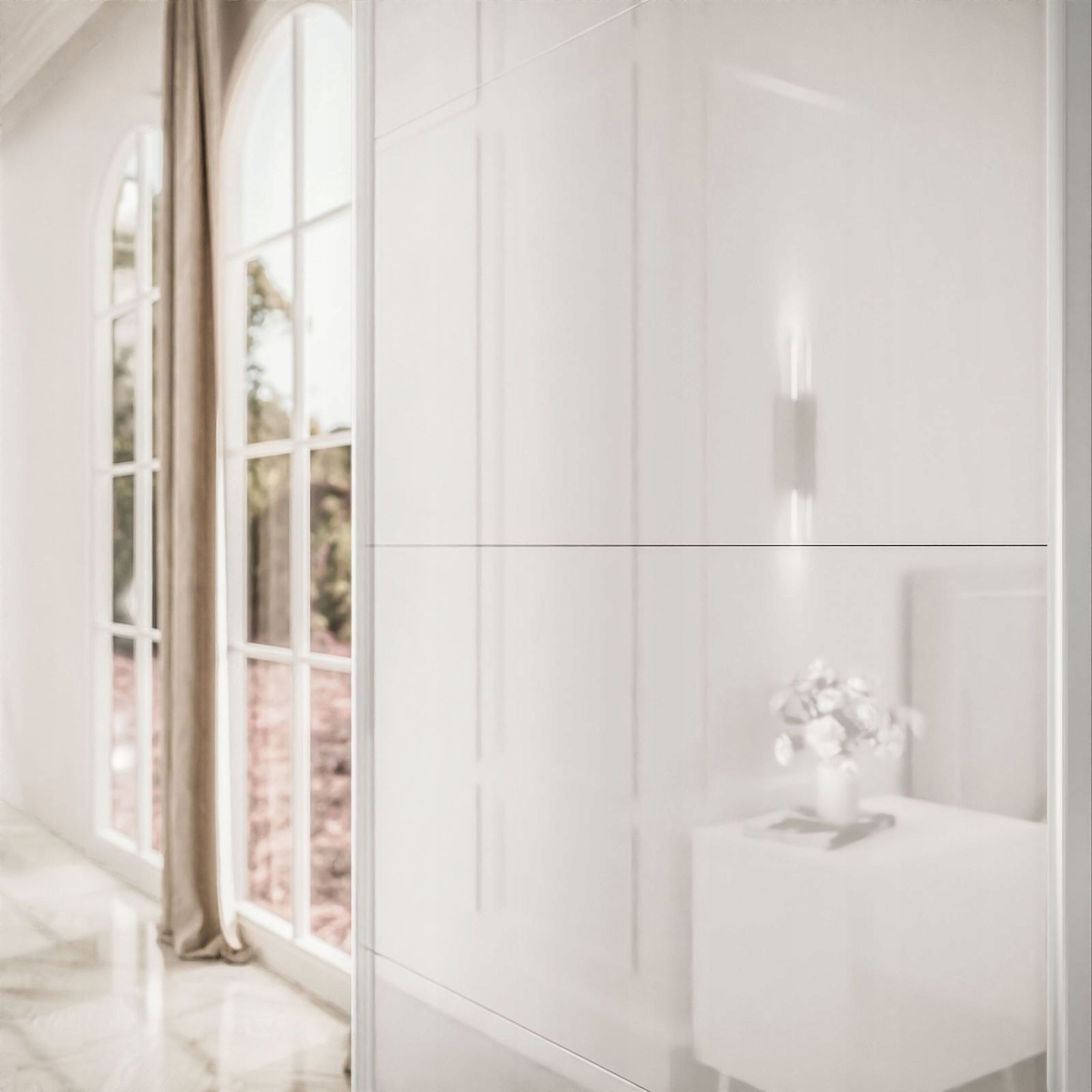 Функціональна дводверна шафа-купе ідеально підходить як для спальні, так і для гардеробної. Завдяки розсувним дверям користуватися ним стане простіше. Крім того, величезні дзеркала, встановлені на дверцятах шафи, дозволять оптимально розширити простір. Внутрішня частина шафи має по шість полиць з кожного боку та місце для штанги для вішалок та одягу.