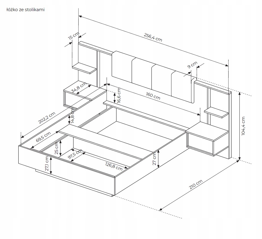 - Ліжко стандартне з контейнером для постільної білизни + металевий каркас з газовими автоматами