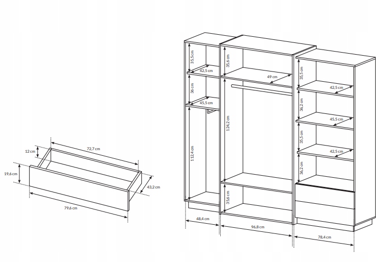 КОМПЛЕКТ МЕБЛІВ ДЛЯ СПАЛЬНЯ '3D' / БІЛИЙ + ДУБ CRAFT GOLD