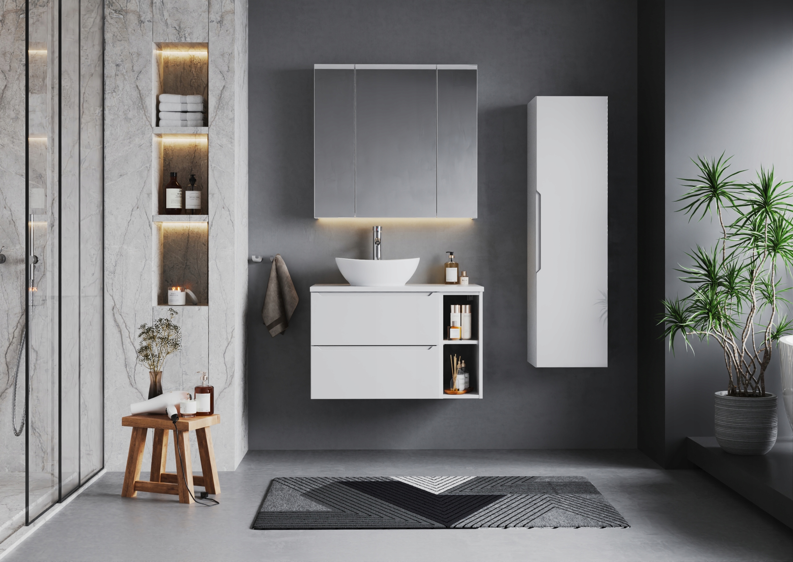 ETNA – це колекція, в якій чиста форма зустрічається з тонкими деталями. Гладкі передні частини з м'яко закругленими краями підкреслюють легкість форм, а фрезерована поздовжня ручка додає їм ергономічність і злагодженість. Ретельно розроблена структура поєднує в собі естетику та функціональність, створюючи меблі, ідеальні для сучасної ванної кімнати.