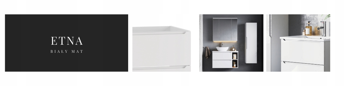 Колекція Etna - це пропозиція для людей, які цінують сучасний дизайн і неповторну гармонію в інтер'єрі. Його характер формують прості форми, збагачені тонкими вигинами, які надають усьому легкості та позачасової елегантності. Доступні колірні варіанти - блискучий білий, м'який кашемір і натуральний промаслений дуб - дозволяють підібрати колекцію до різноманітних композицій, від мінімалістичних до більш затишних і теплих.