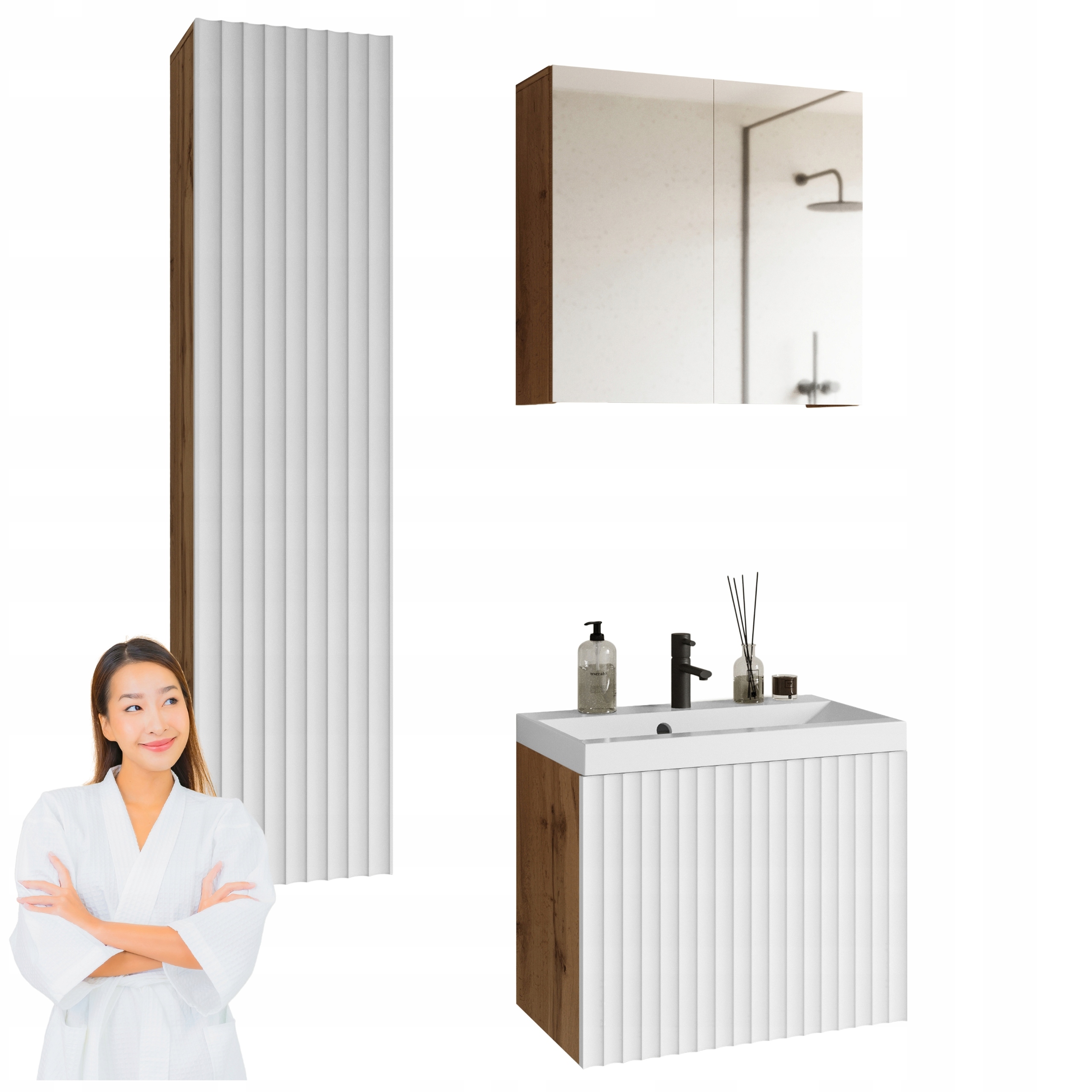 КОМПЛЕКТ МЕБЛІВ ДЛЯ ВАННОЇ КІМНАТИ З ДЗЕРКАЛОМ ТА УКОМИЙНИКОМ, ДУБ ВОТАН, БІЛИЙ