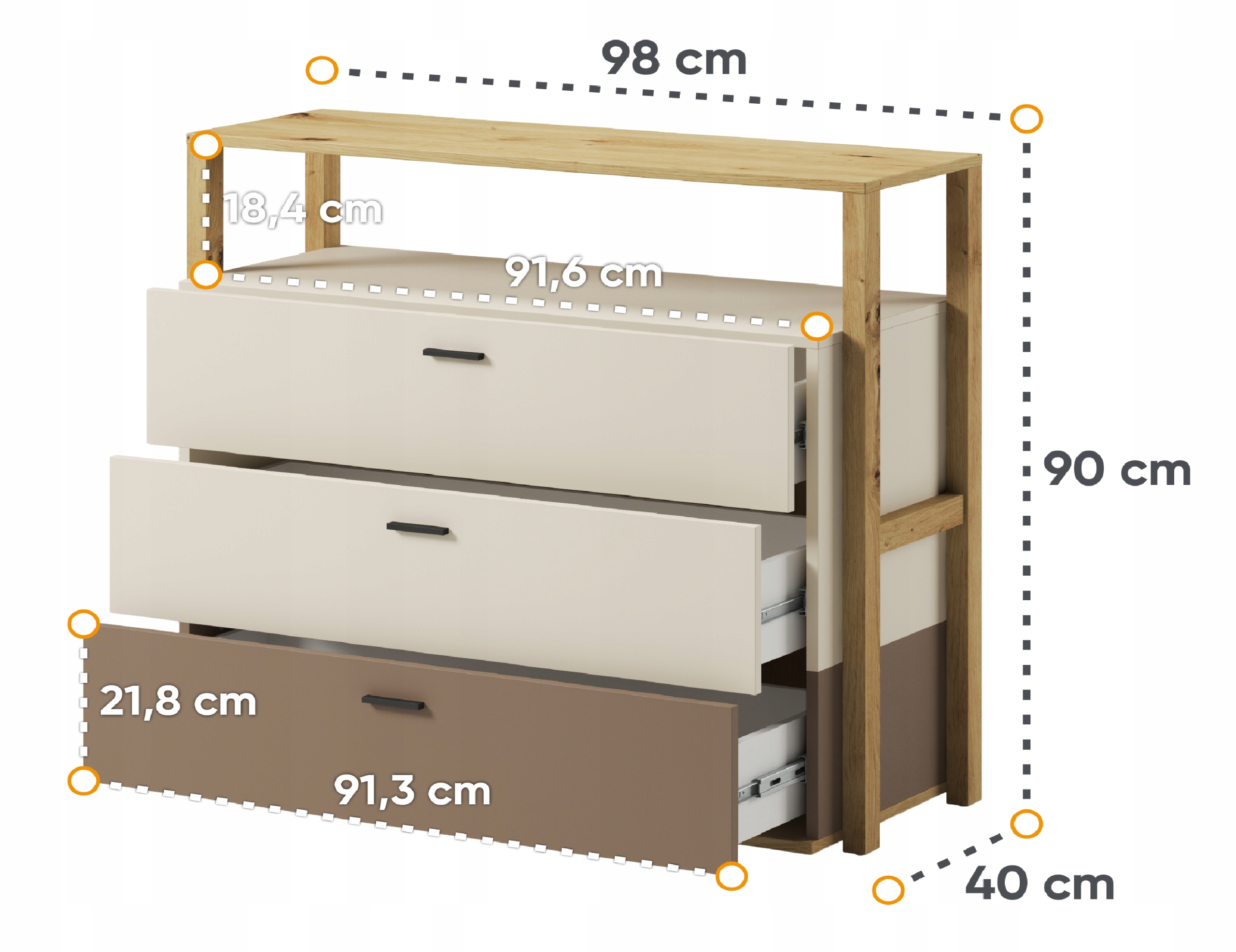 - LY-06 -комод з трьома ящиками 98 см x 90 см x 40 см