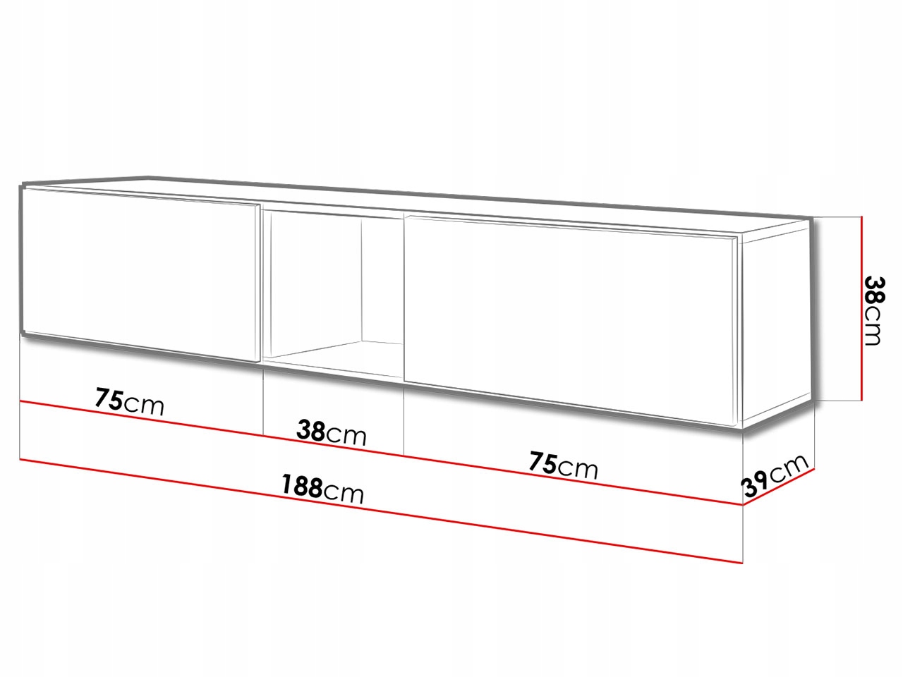 - ТВ-тумба RO03: ширина: 75 см, висота: 38 см, глибина: 39 см - x2 шт,