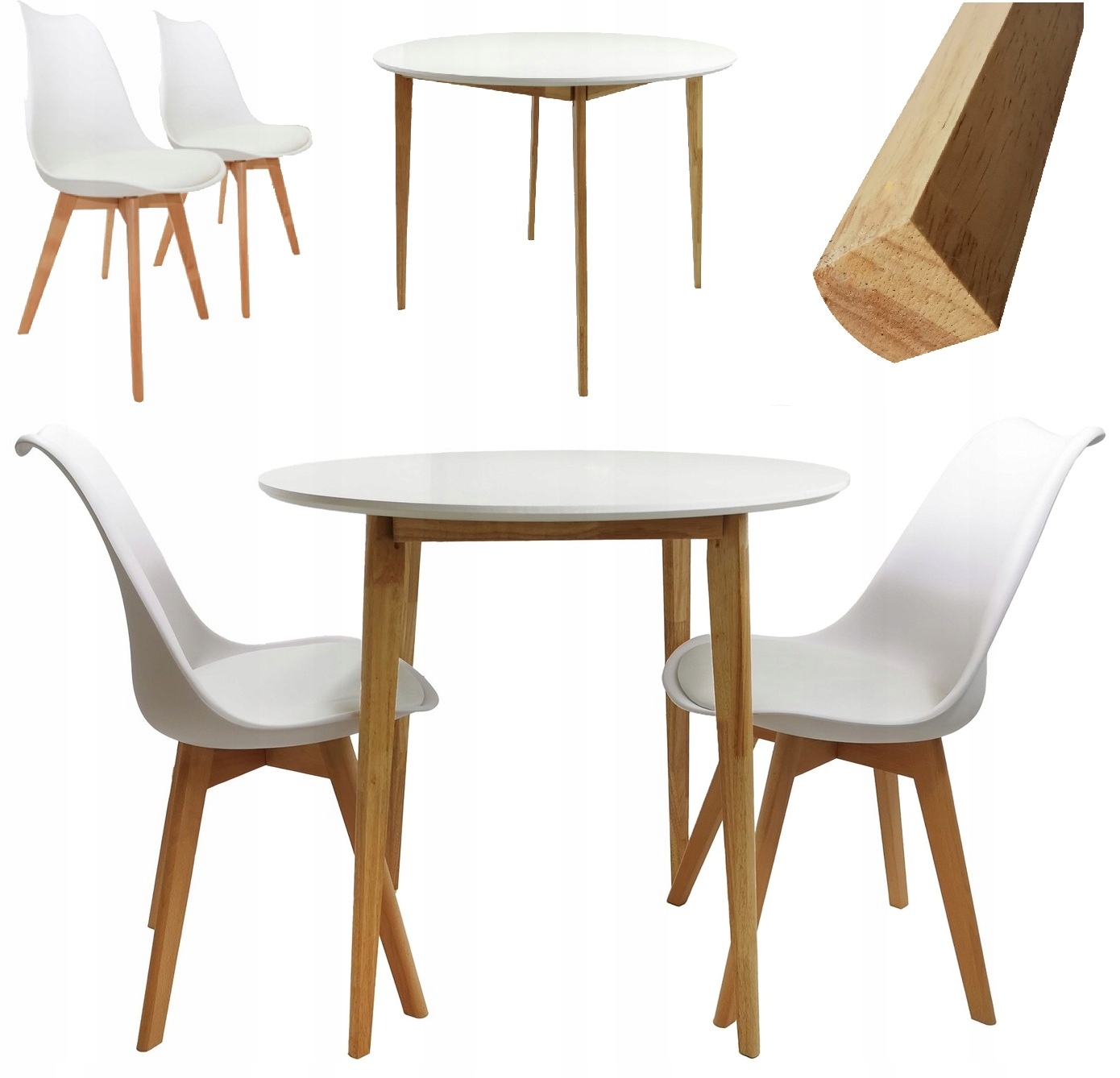 КОМПЛЕКТ МЕБЛІВ СКАНДИНАВСЬКИХ ЇДАЛЬНІ ВІТАЛЬНІ 2x СТІЛЬЦІ ЕММА+СТІЛ FI80 БІЛИЙ