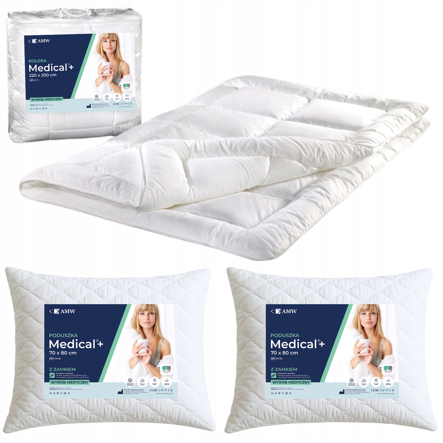 Основою лікування алергічних захворювань є уникнення алергенів, тобто факторів, що викликають алергію. Доведено, що основний алерген людини, кліщі домашнього пилу, не розмножуються на поліестеровій основі, тому ковдра Medical®+ з таким складом є бар'єрним матеріалом проти цього алергену. Продукт можна використовувати як допоміжний засіб*⁾ у профілактиці та полегшенні наступних алергічних захворювань**), як один із елементів різноспрямованої дії, спрямованої на обмеження впливу алергенів: хронічний алергічний риніт, бронхіальна астма, атопічний дерматит, інші алергічні захворювання (наприклад, запалення кон’юнктиви, носових пазух, гортані, глотки та піднебіння). мигдалини).
