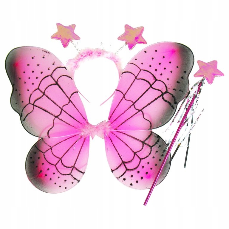 КОМПЛЕКТ МЕТЕЛИКА КРИЛА ФЕЇ + ПОВ'ЯЗКА + ПАЛИЧКА СВІТЛО-РОЖЕВИЙ