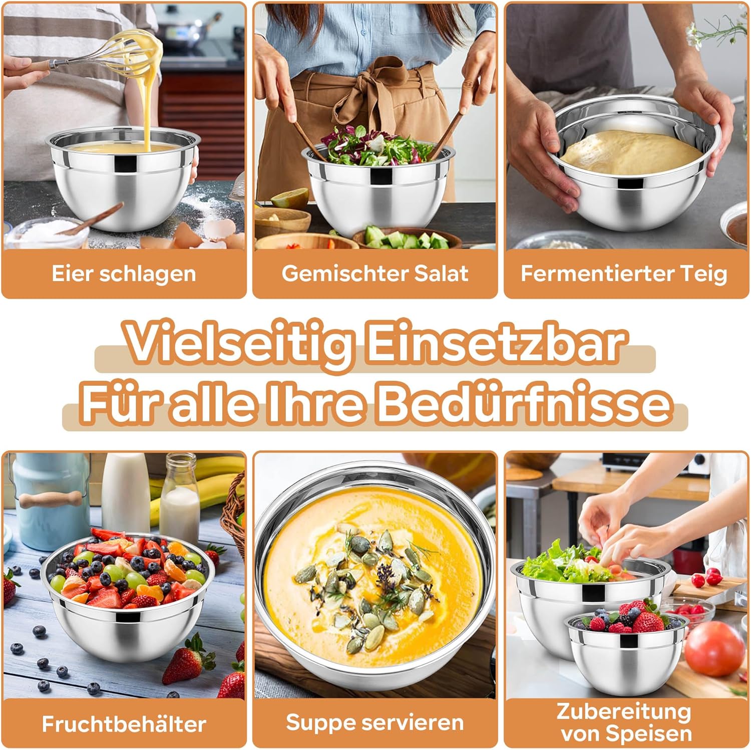 Набір із 7 чаш для змішування виготовлено з високоякісної нержавіючої сталі, що забезпечує міцність та довговічність. Не хвилюйтеся про вм’ятини, іржу чи знос — ідеально підходить для щоденного використання на кухні.
