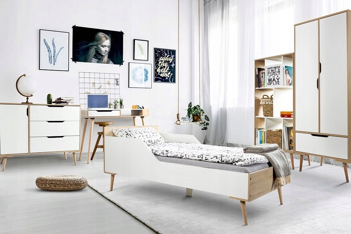 👉Дводверна шафа Sofie, яка є дуже функціональною, з одного боку має багато простору між полицями, завдяки чому ваша дитина легко розкладе свій одяг. З іншого боку шафи розташована штанга для вішалок, а внизу шафи дуже місткий ящик. Шафа поєднується з красивим скандинавським комплектом меблів Софі.