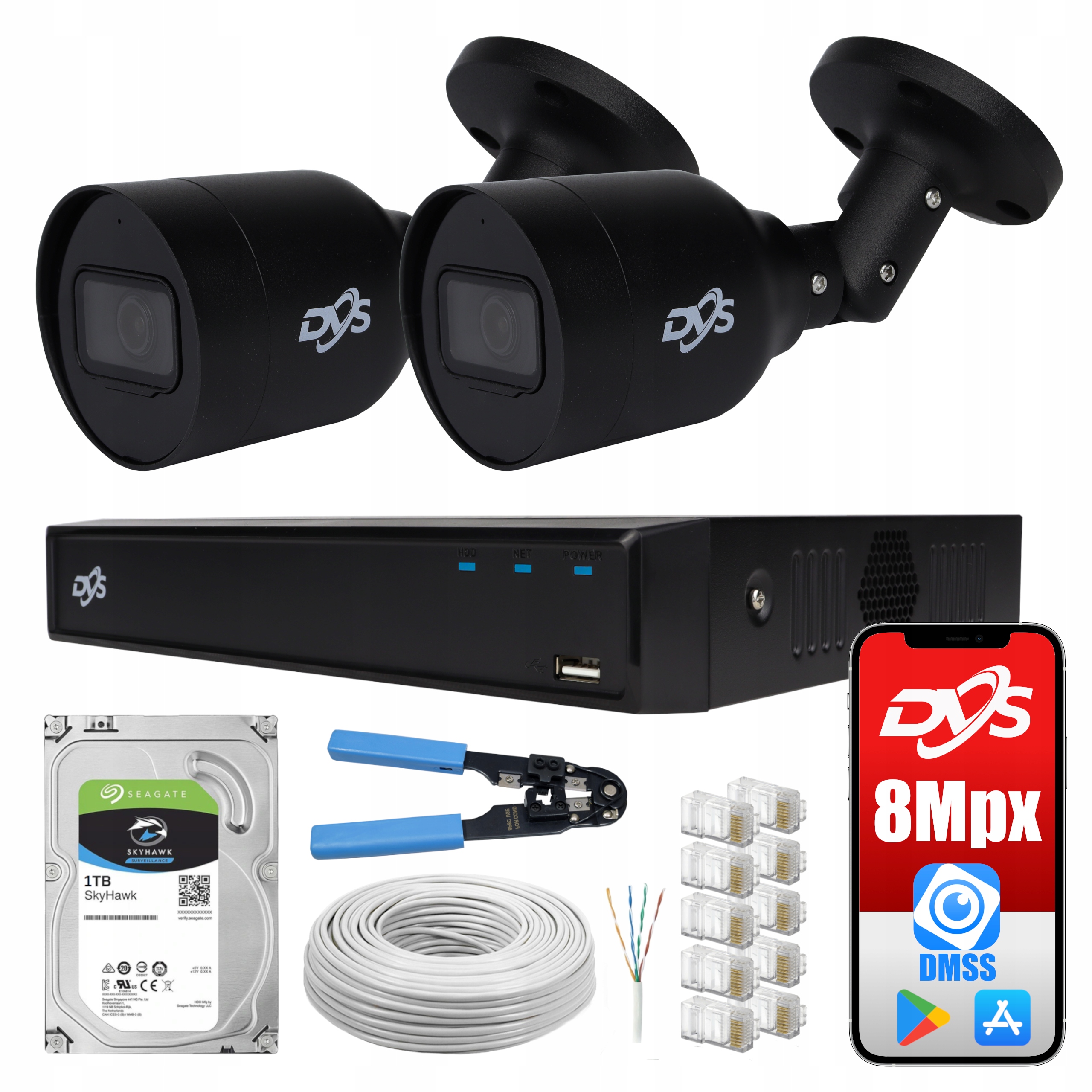 Надійний набір від відомого виробника Dahuaдля DVS Polska для самостійного монтажу з двома трубковими камерами в чорному корпусі, що підтримують роздільну здатність до 8Mpx UltraHD 4K 3840x2160p.
