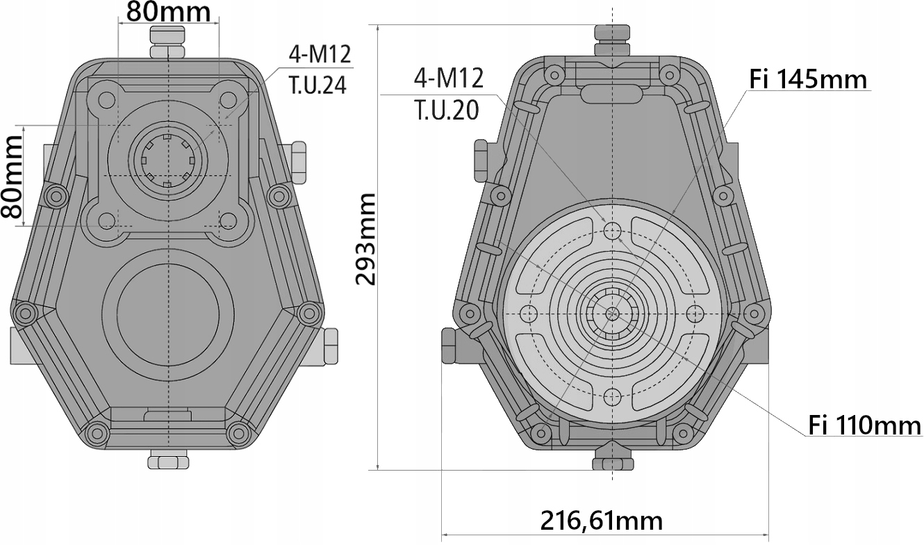 ШЕСТЕРНЯ МУЛЬТИПлікатора ВОМ 1:3,8 З 2-ХОДОВИМ ШЕСТЕРЕНЧИМ ГІДРАВЛІЧНИМ НАСОСОМ 50 см3/об