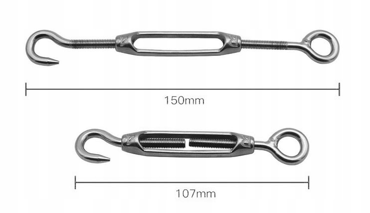- Стяжна муфта - Регульовані натягувачі мотузки можна використовувати для натягування сталевого дроту, кабелю, антени, ланцюга, мотузки, білизняної мотузки, легких ниток тощо та регулювання пружності мотузки.
