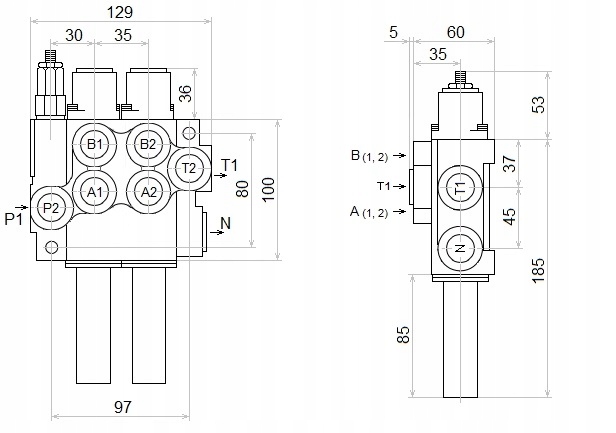 Призначений для механічного керування двома секціями в розподільнику. Має додаткову кнопку та вихід електричного джгута, що дозволяє в майбутньому використовувати електромагнітний клапан, який буде керувати додатковою третьою секцією, напр. в навантажувачі ТУР крокодилом або кипозахватом.