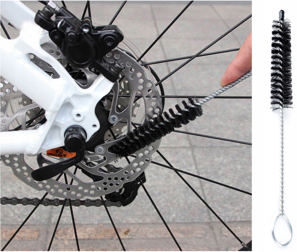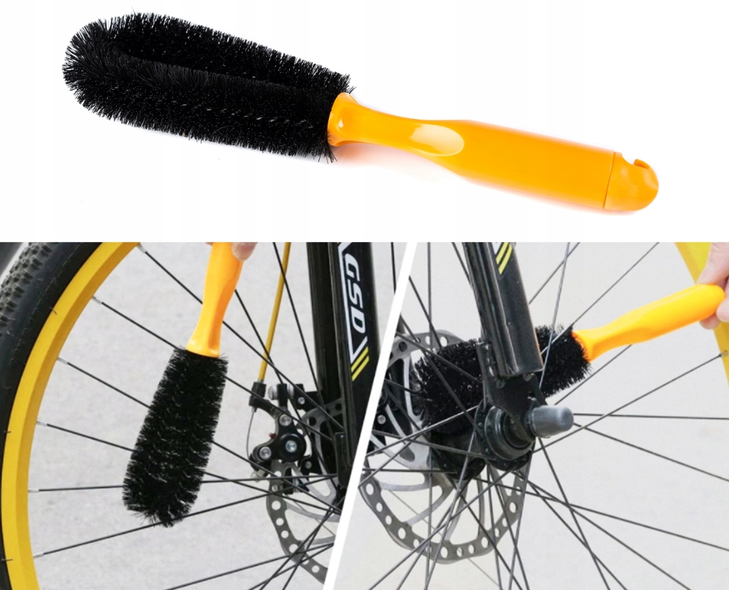 Щітка на ручці з щільною щетиною, що дозволяє точно очищати, наприклад, велосипедні спиці, гальмівні диски, багажник або нижня частина сідла