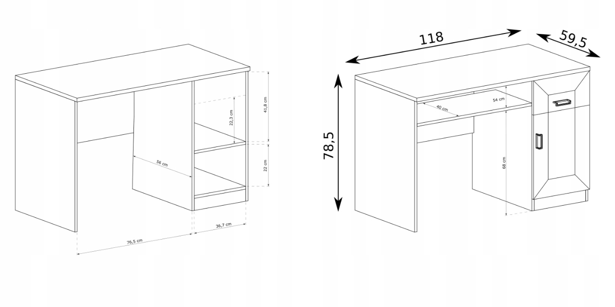 - письмовий стіл Тадеуш T-19: 118_x_78.5_x_59.5 - письмовий стіл має висувну полицю для клавіатури, ящик і тумбу з полицею