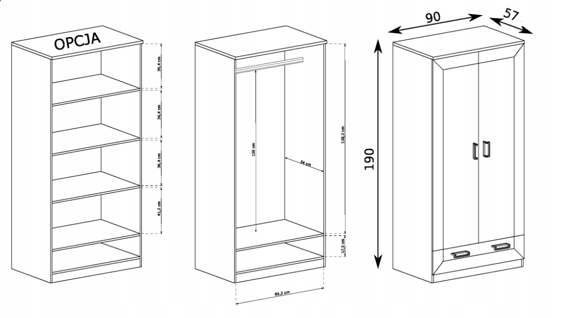 - шафа Tadeusz T-07: 90_x_190_x_57 - 2-дверна навісна шафа з рейками