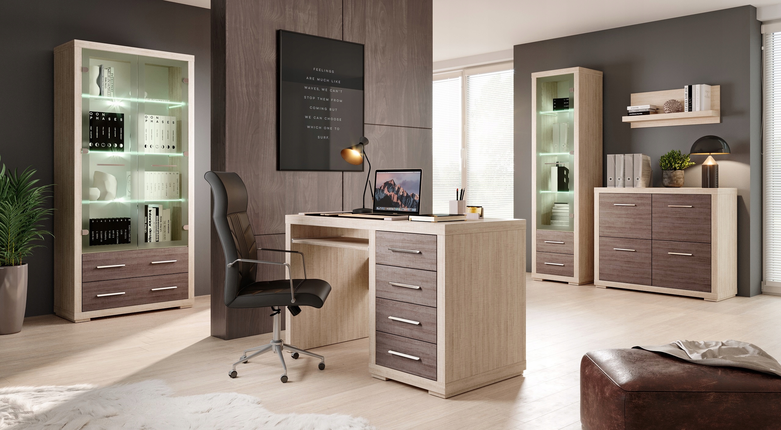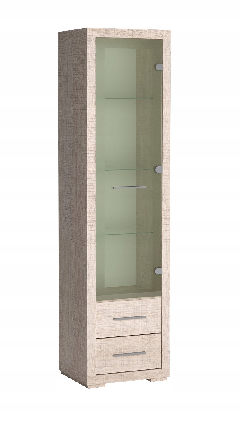 - вітрина у верхній частині має скляну передню частину з 3 полицями із загартованого скла, а в нижній частині 2 висувних ящика