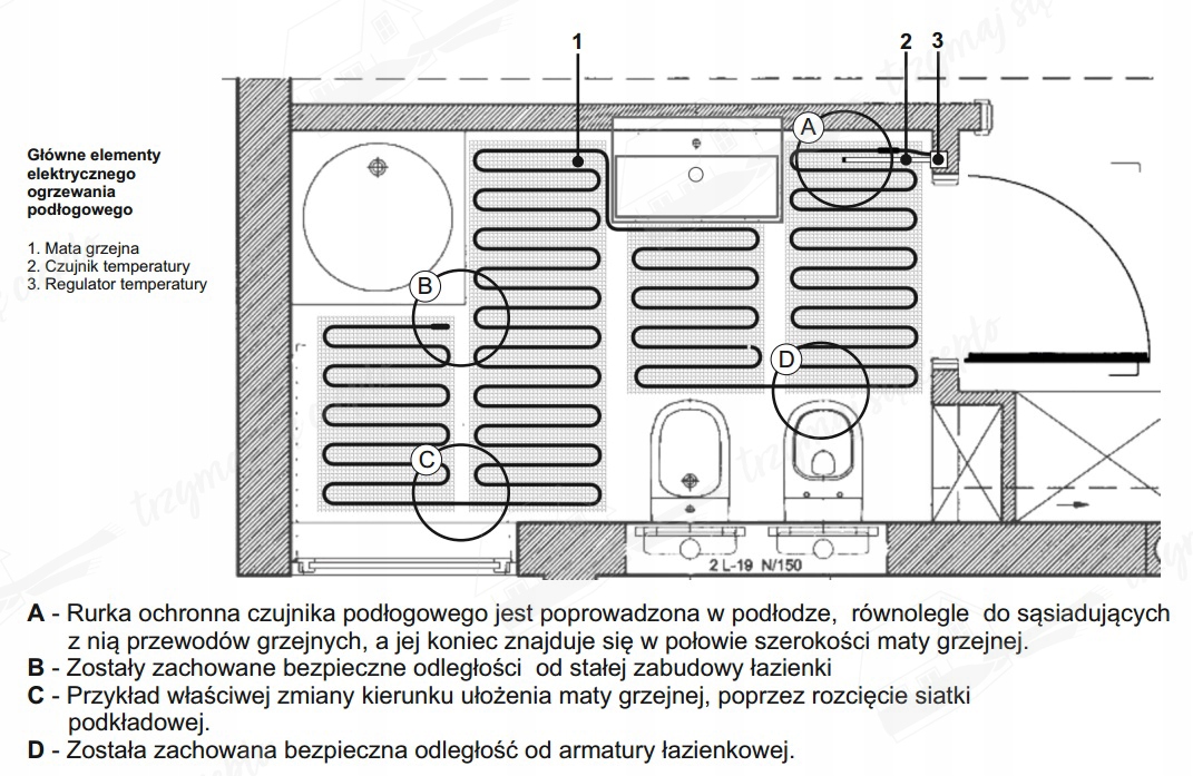 Мати вкладають безпосередньо в шар клейового розчину або в бетонну стяжку. Килимок має сітку, яку можна вільно розрізати для отримання потрібної форми поверхні. Мат дуже тонкий (приблизно 3,5 мм), що дозволяє встановлювати обігрів без необхідності піднімати підлогу. Килимки можна з'єднувати, але ні в якому разі не можна вкорочувати. Пропонуємо килимки різної довжини. Крім того, якість і надійність наших килимків підтверджується 25-річною гарантією.