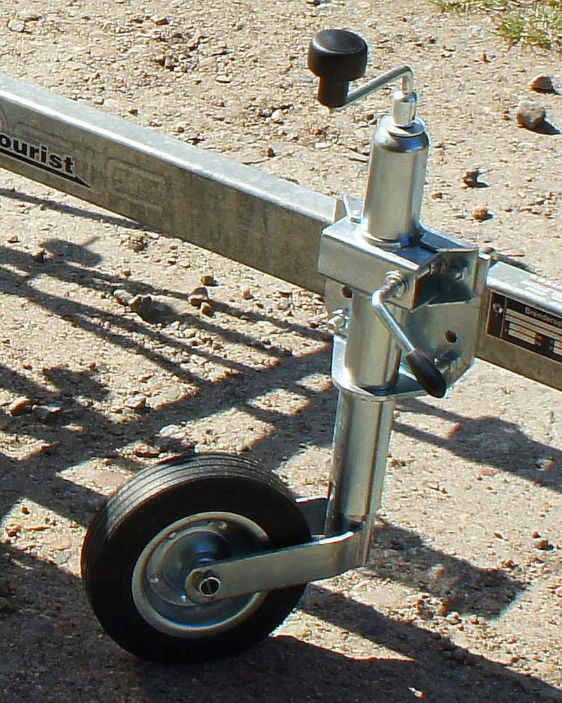 Опорне колесо із затискачем і кронштейном можна побачити на фото нижче (у передній частині причепа).
