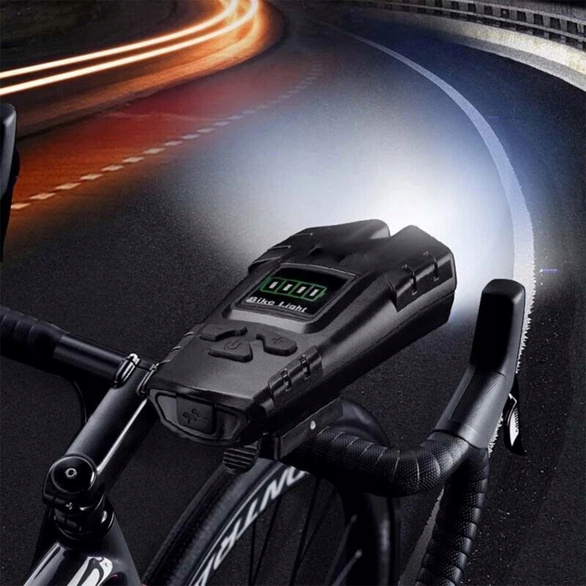 Передній ліхтар має вбудований електронний зумер і оснащений заднім ліхтарем, що живиться від кнопкової батареї. Абсолютно ідеальний велосипедний аксесуар!
