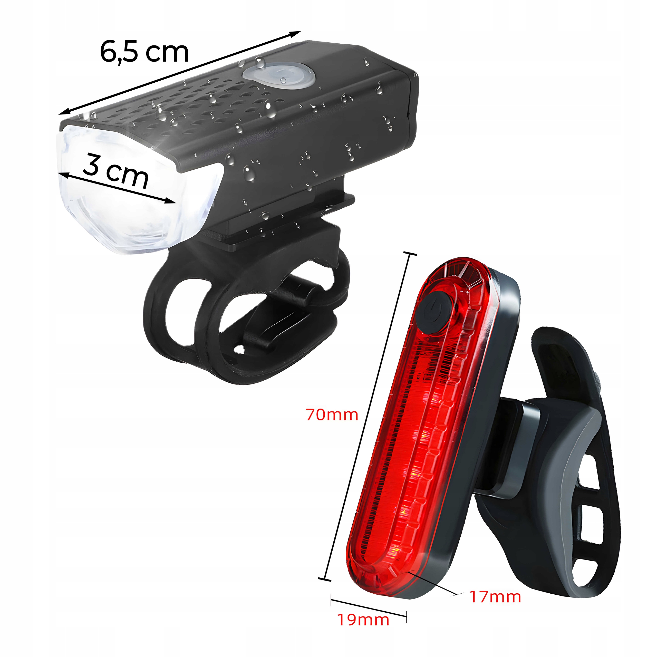 Наш набір велосипедних ліхтарів — це не тільки джерело світла, але й чудовий інструмент, адаптований до складних погодних умов. Він водонепроникний, що робить його ідеальним для їзди на велосипеді, особливо за обставин, коли погода може бути непередбачуваною. Завдяки водонепроникності вам не доведеться турбуватися про дощ або вологу під час ваших велосипедних пригод.