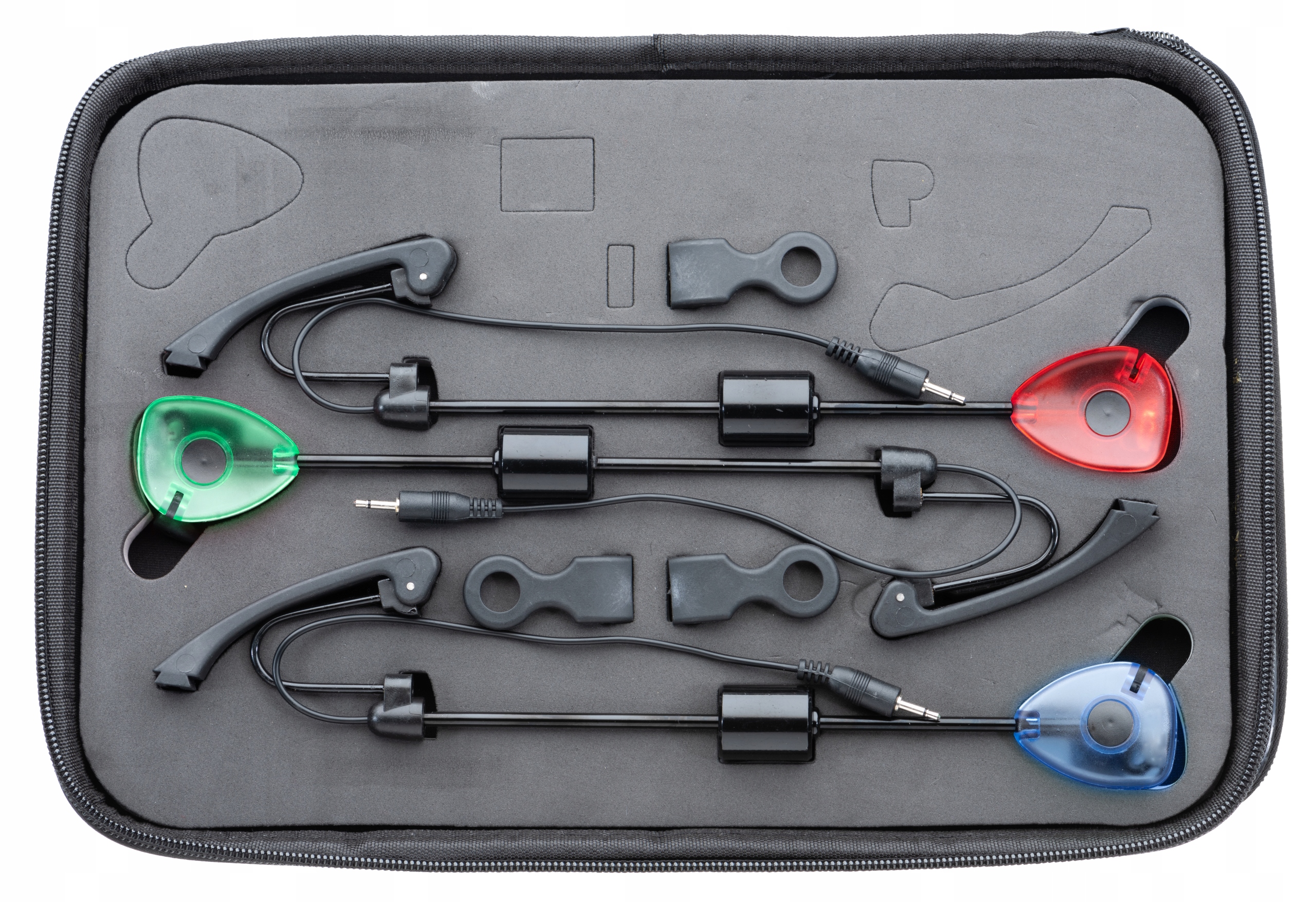 JAXON Swinger Set з можливістю підключення до електронного індикатора клювання, завдяки якому наш свінгер буде світитися при кусанні. Сигналізатор має регульовану вагу, що дозволяє оптимально налаштовувати його в залежності від умов лову. Усі сигнали упаковані в зручний футляр
