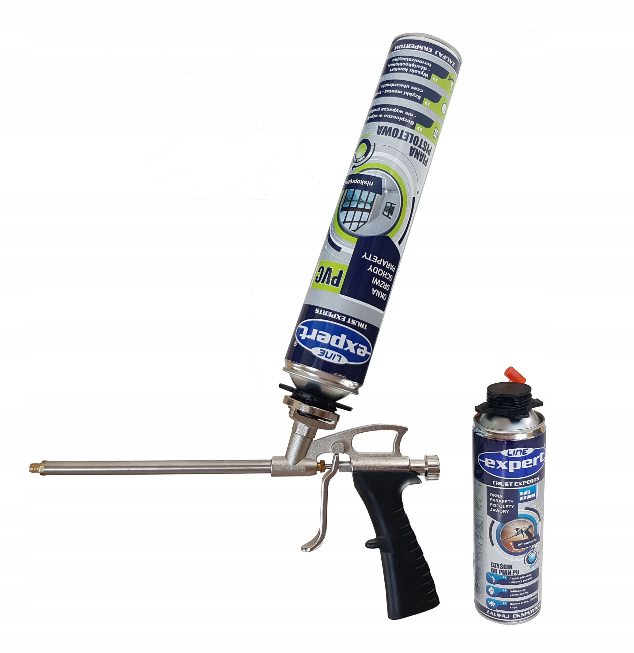 Монтажна піна низького тиску EXPERT в комплекті з пістолетом EXPERT і очисником