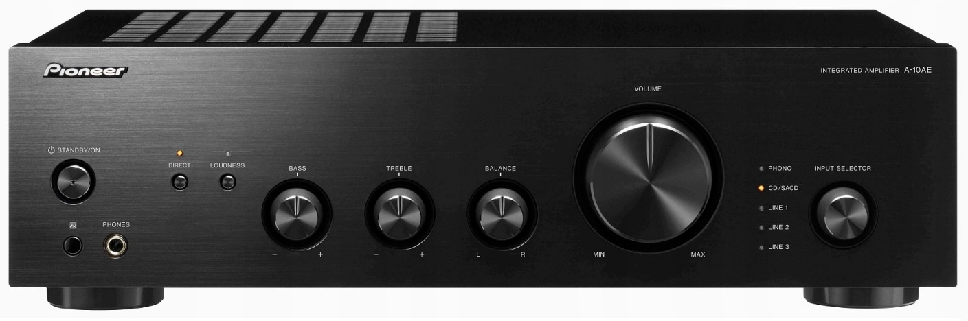 Pioneer A-10AE — це інтегрований підсилювач на основі концепції Direct Energy Design. Він забезпечує високе співвідношення сигнал/шум для створення приголомшливого реалістичного звукового поля. Найважливішими функціями цього підсилювача є ізольоване джерело живлення, функція Direct і вхід MM phono.
