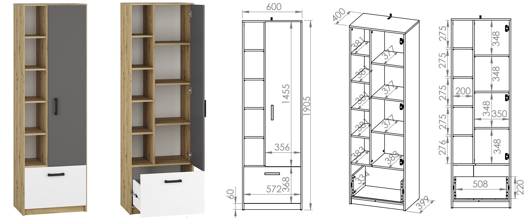 - полиця 03: 60 x 191 x 42 см