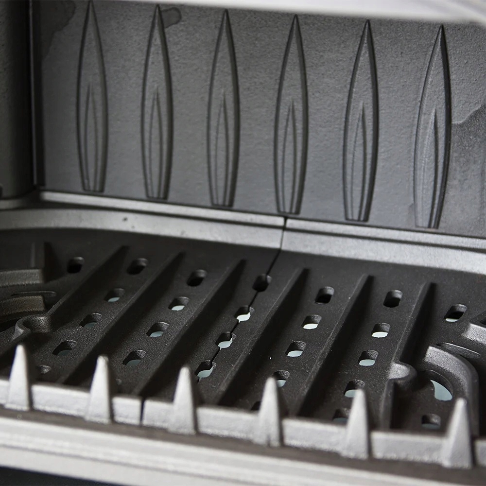 Ящик/контейнер для золи, де збираються залишки спаленої деревини, і рухома решітка, яка полегшує видалення золи.