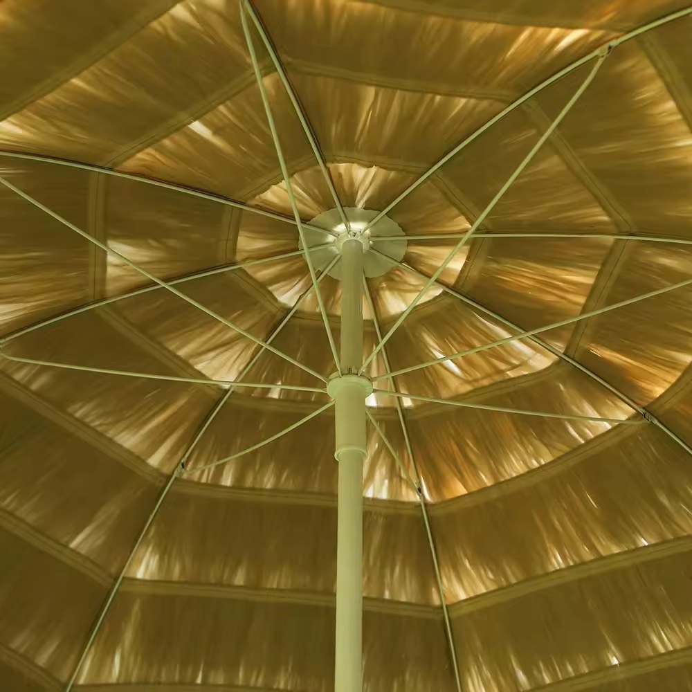 ☀️Парасолька оснащена загостреним наконечником, що полегшує встромлення в землю. Наша пропозиція також включає спеціальну основу, що загвинчується, що дозволяє надійно розмістити парасольку на піску!