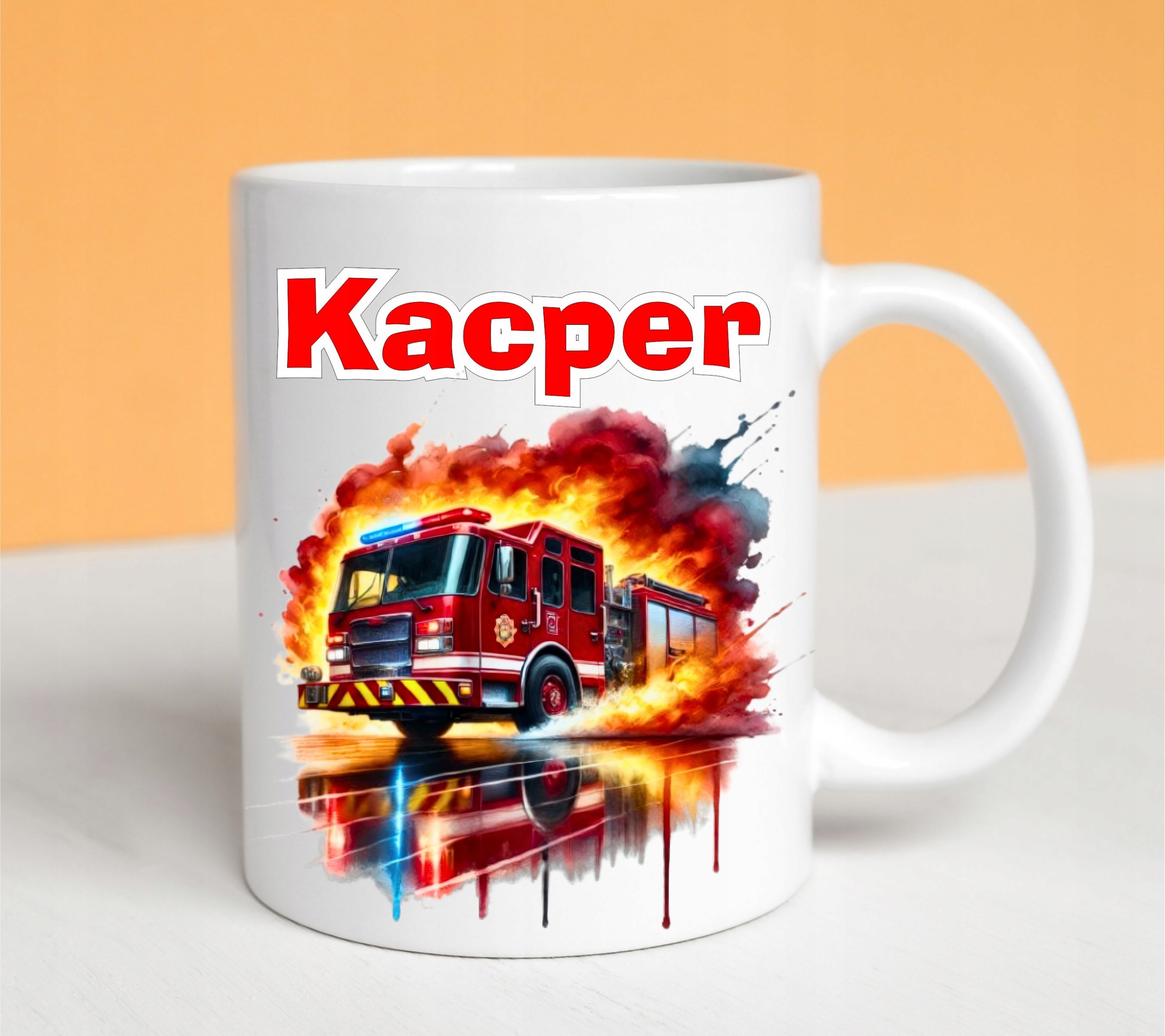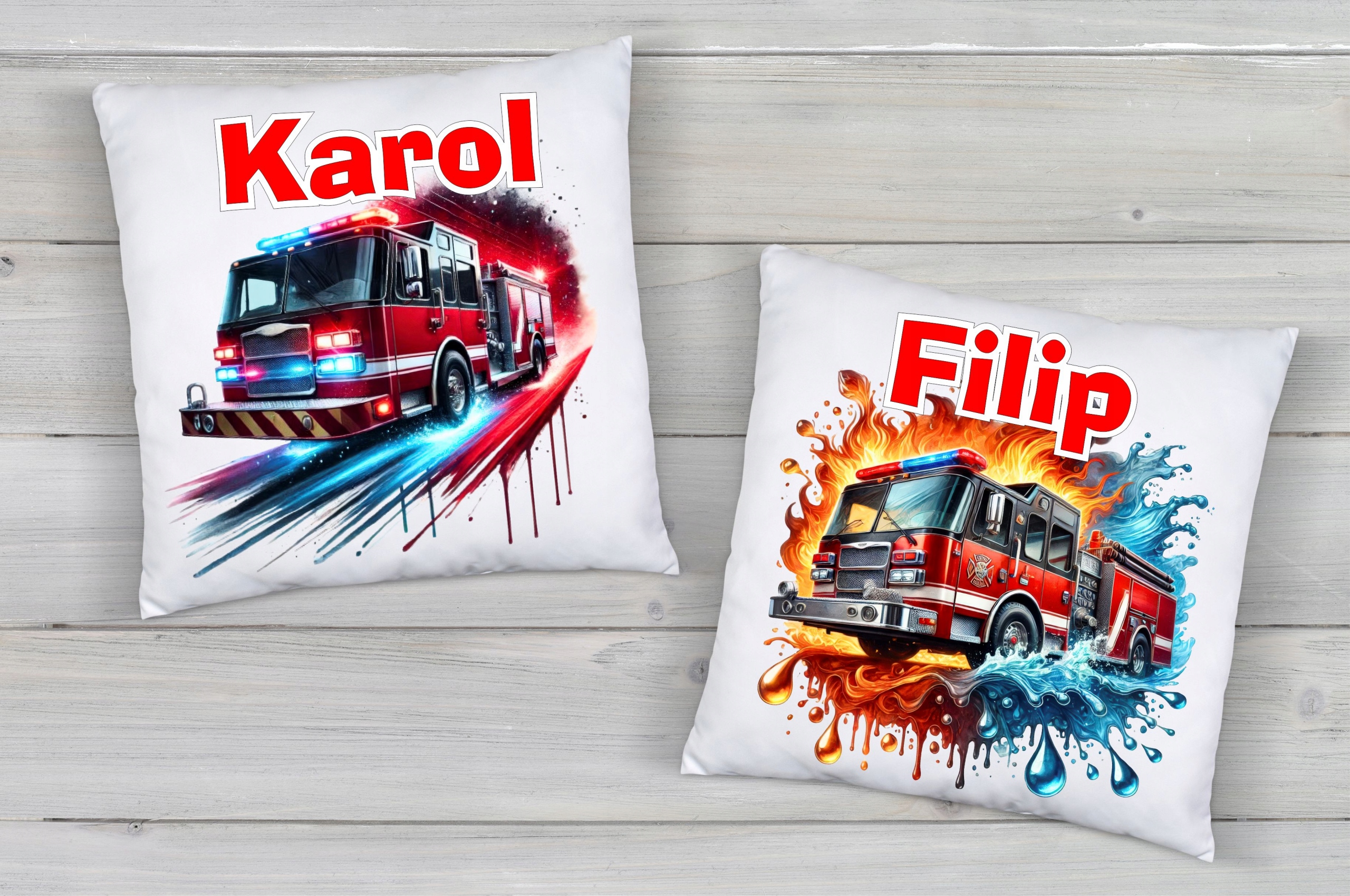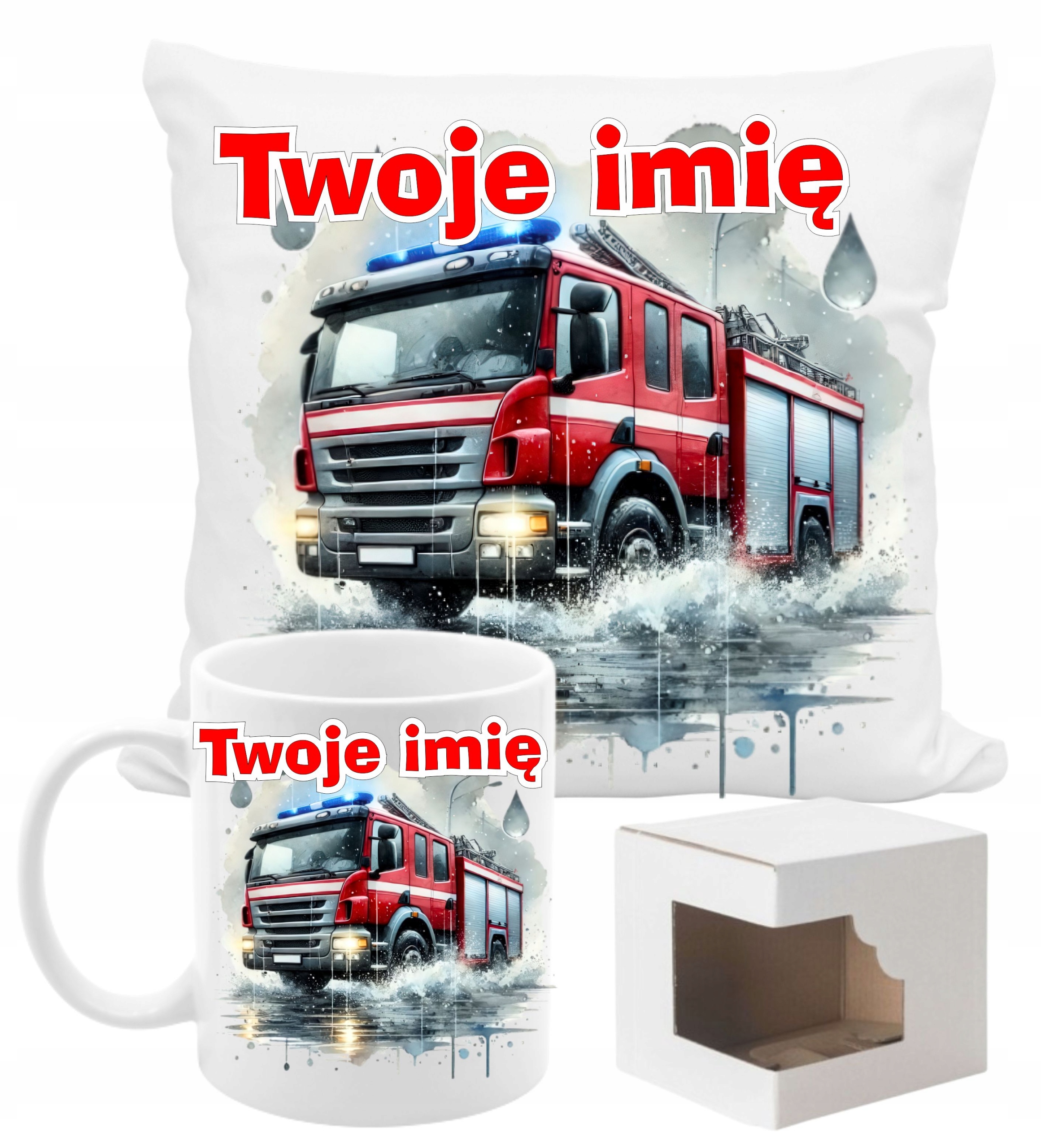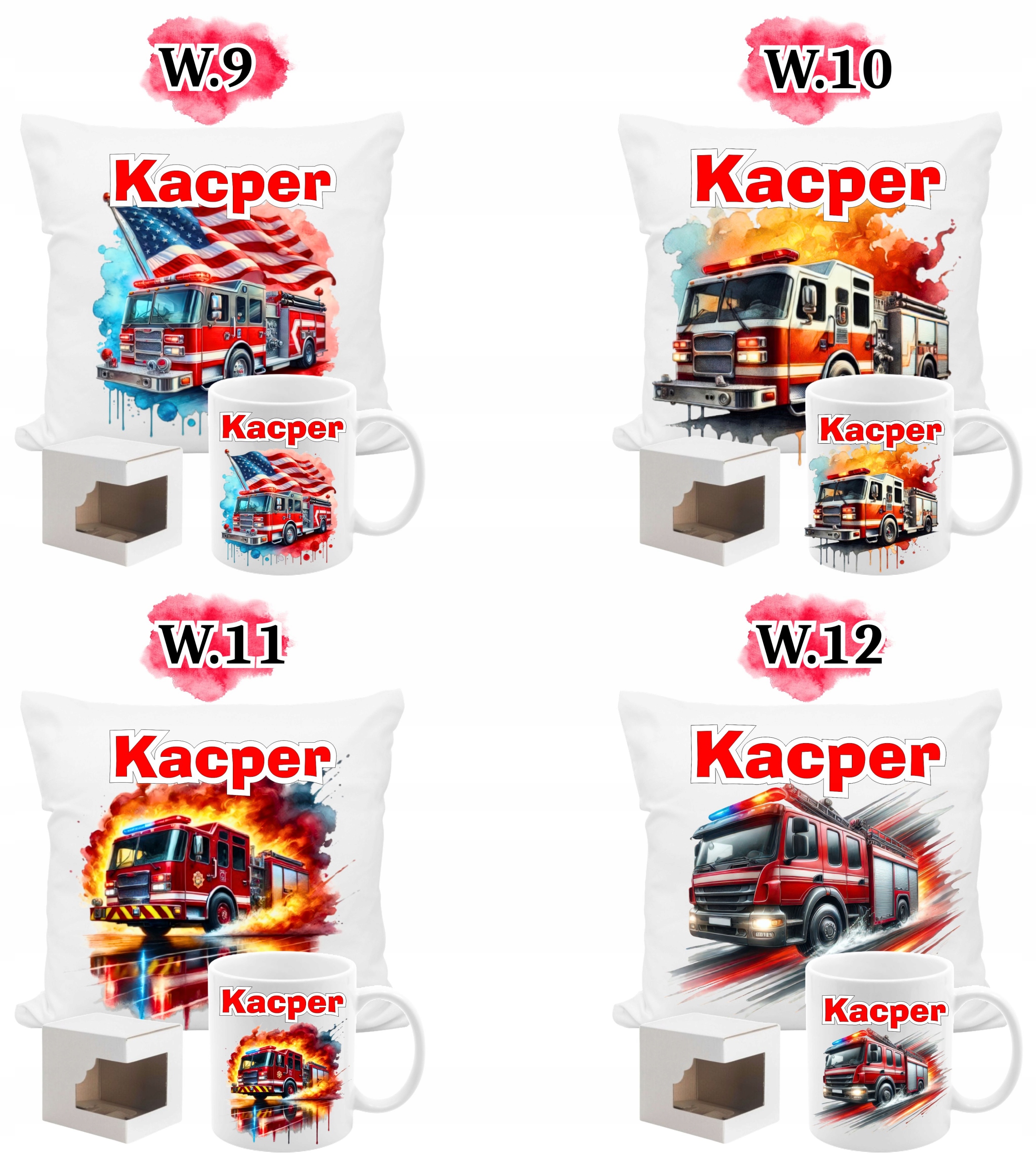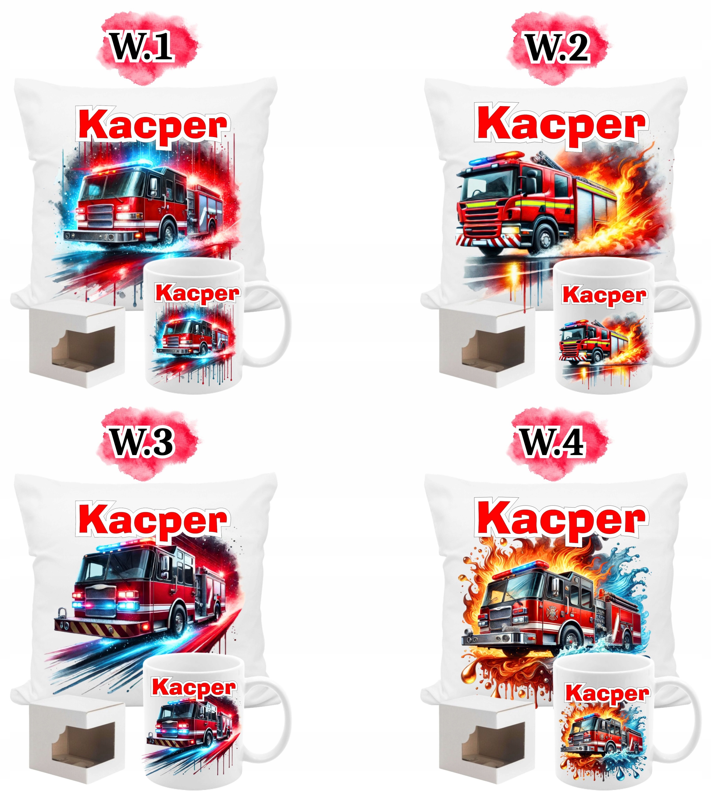 КОМПЛЕКТ ПОДУШКА ЧАШКА ПОЖЕЖНИК ПОЖЕЖНА МАШИНА АВТО + ІМ'Я