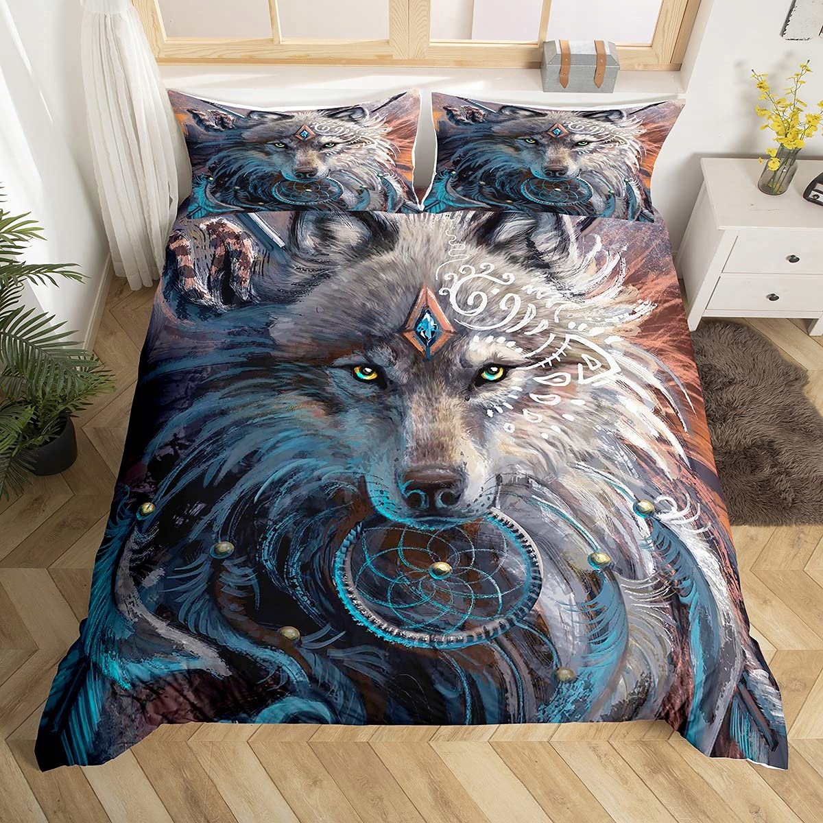 Набір ковдр «Вовк» Queen для дітей та підлітків. Набір постільної білизни «Вовк», «Снігова ковдра», малюнок із зображенням диких тварин.