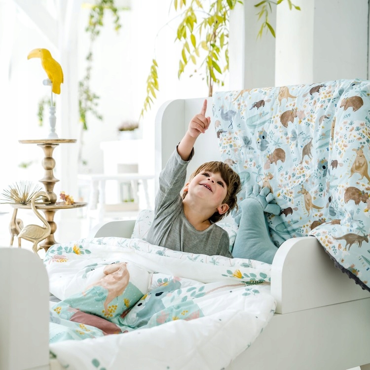 Дитяча постільна білизна виготовлена з бавовни найкращої якості та має всі необхідні сертифікати. У комплект входить м'яка ковдра і подушка з легким наповнювачем з антиалергічного поліефірного волокна, що забезпечує потрібну температуру, доступ кисню і відведення вологи і, як наслідок, чудовий комфорт під час сну.