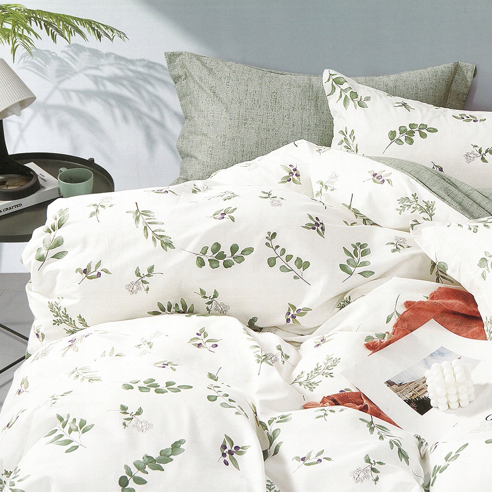 Комплект постільної білизни з квітами та листочками ДВОСТОРОННИЙ 200х220 + 70х80 100% БАВОВНА