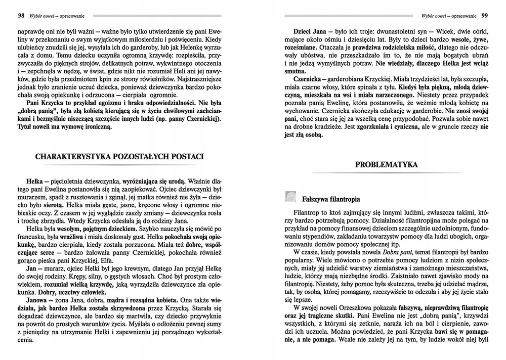 Добірка оповідань Елізи Ожешкової від видавництва GREG — збірка найпопулярніших і найчастіше читаних оповідань, підготовлена спеціально для студентів. До збірки увійшли найважливіші твори автора, підготовлені польськими викладачами. Інформація, що міститься в дослідженні, узгоджується з останньою основною навчальною програмою.