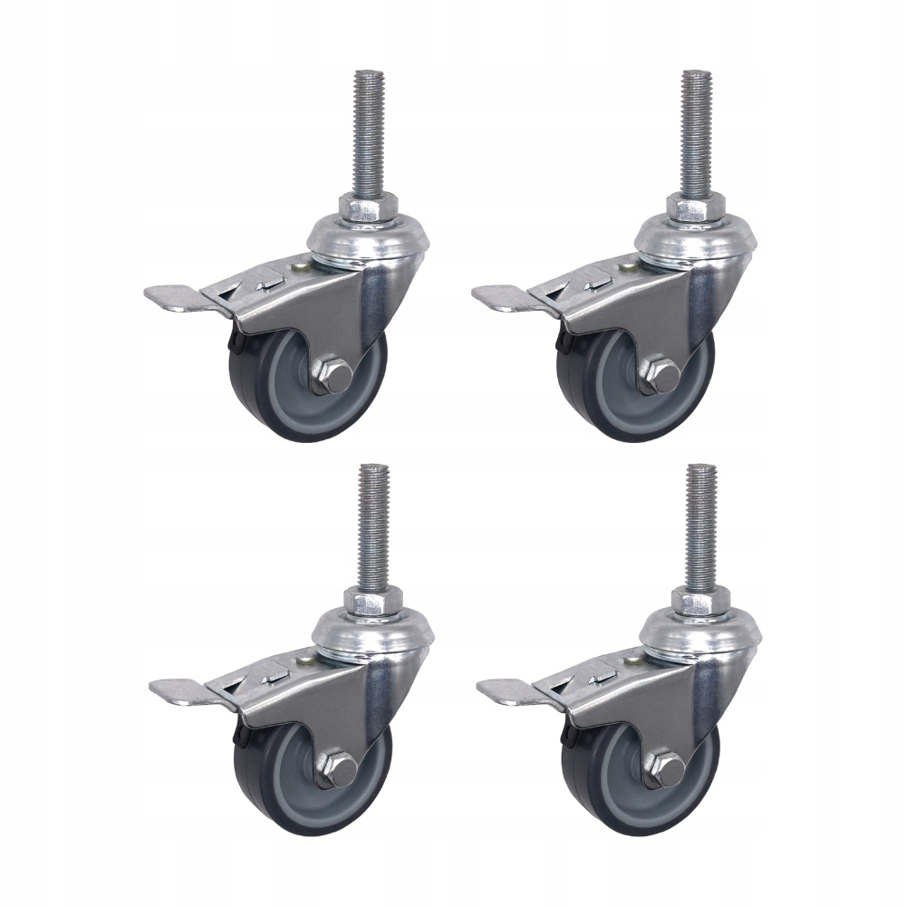 Цей набір коліс ідеально підходить для транспортування візків, робочих столів, полиць або меблів, які потребують легкого переміщення та безпечного замикання.
